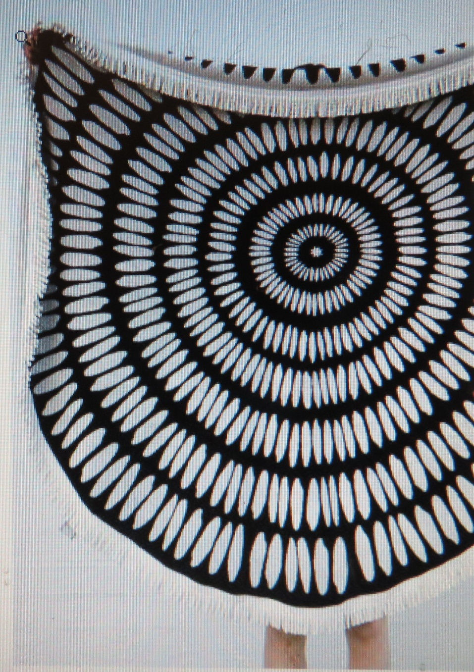 Black and White Tassle Round Beach Blanket